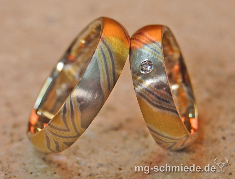 Mokume Gane Ringe in Grüngold und Palladium